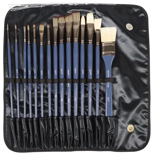 Featuring 15 premium taklon and hog bristle brushes, this comprehensive collection caters to a wide range of painting styles and techniques.