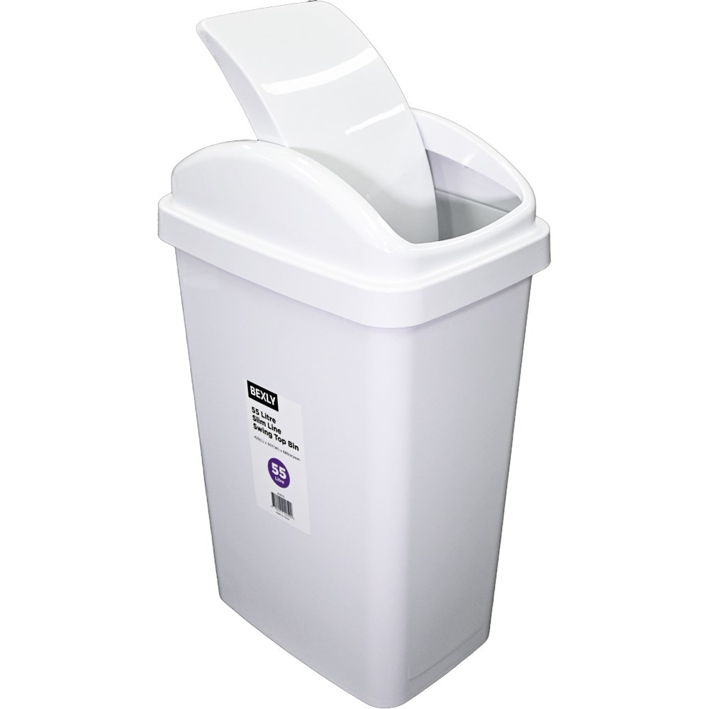 Bexly BX8179 Slim Line Swing Top Bin (55L, White): High-Capacity, Low-Profile Waste Solution for PNG