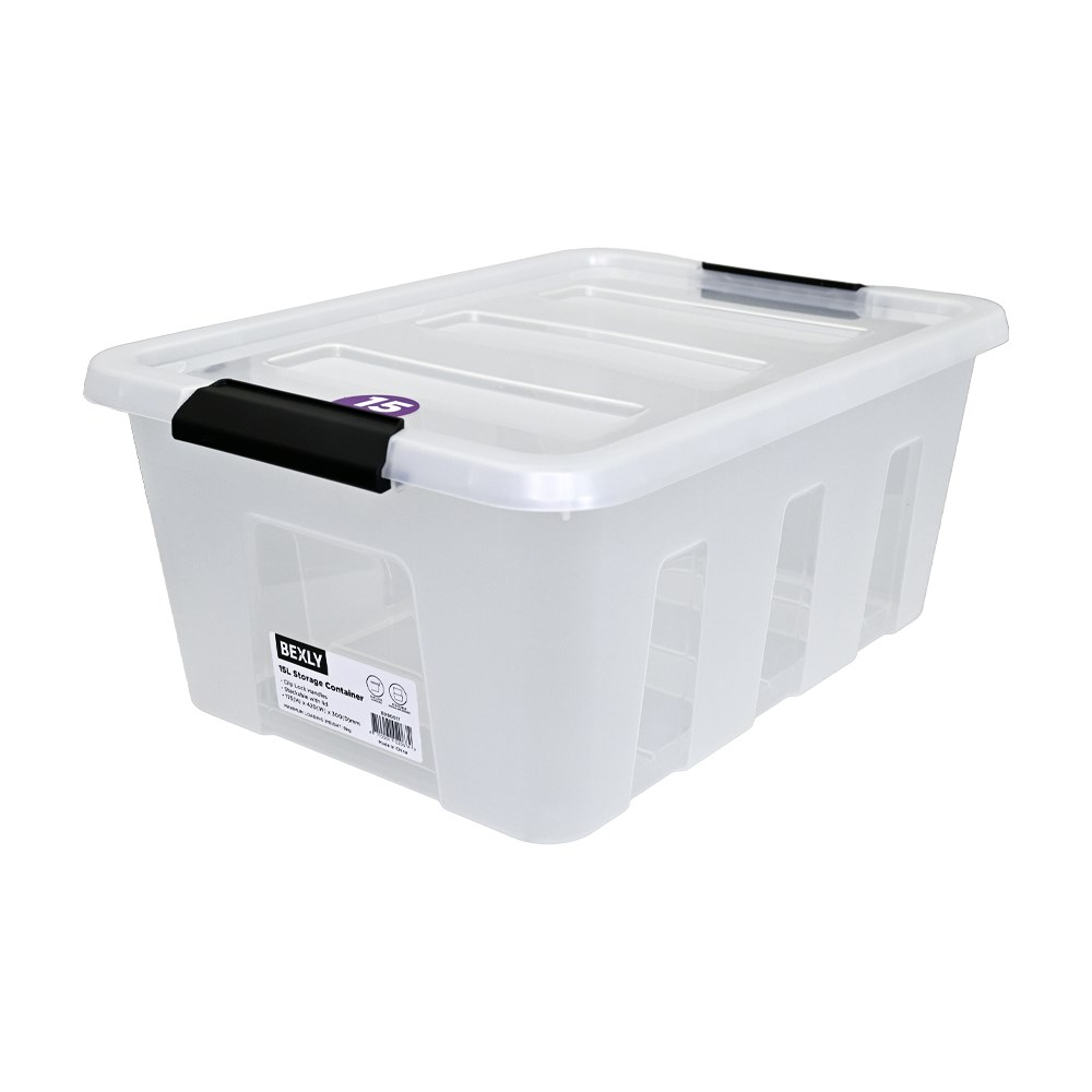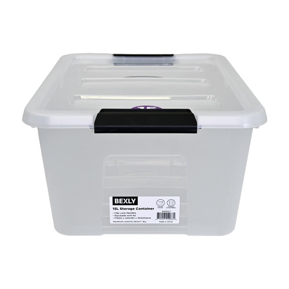 Bexly BX90017 15L Clear Storage Box - Stackable, Clip Locks | Ideal for Detailed Organisation in PNG Schools, Homes & Offices (Max 9kg)