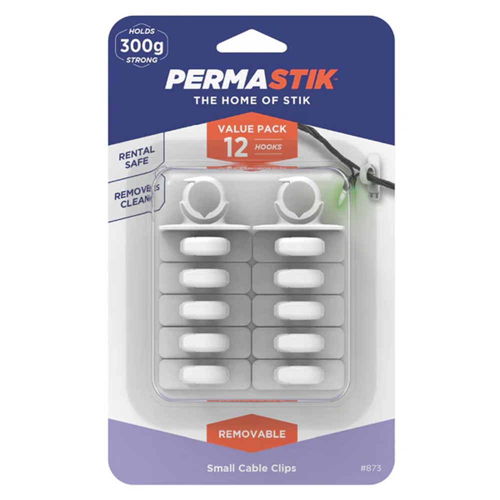 Organise your space effortlessly with Permastik #873 Small Cable Clips! Designed for versatility, this pack of 12 hooks securely holds up to 300g, making it perfect for managing cables and clutter in both home and office environments. Each clip features a rental-safe adhesive, ensuring a strong hold that removes cleanly without damaging surfaces. Ideal for Papua New Guinea, these clips help you maintain a tidy environment without compromising on style. Say goodbye to tangled cords and hello to a streamlined look! Upgrade your organisation's game with Permastik's trusted quality. Get yours now at Theodist!