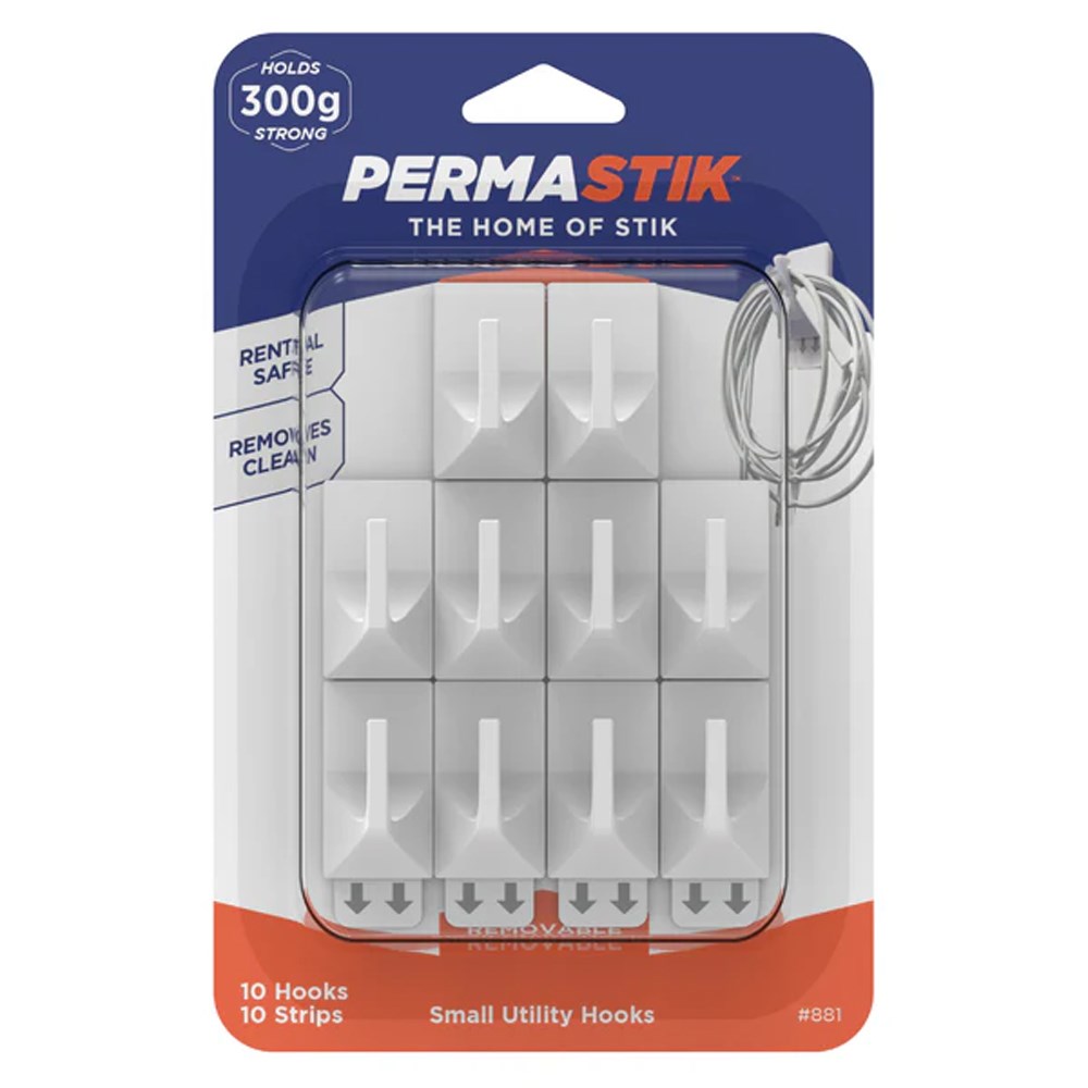 Introducing the Permastik #881 Small Utility Hooks, the perfect solution for organising your home or office in Papua New Guinea. Each pack includes 10 durable hooks and 10 strong adhesive strips, capable of holding up to 300g. These hooks are rental safe, allowing you to keep your walls damage-free while maximising space. Whether you need to hang keys, tools, or decorations, Permastik hooks offer versatile placement with easy removal and clean adhesion. Ideal for any setting, these hooks combine functionality with style, making them a must-have for quick organisation and tidy spaces. Elevate your environment today!