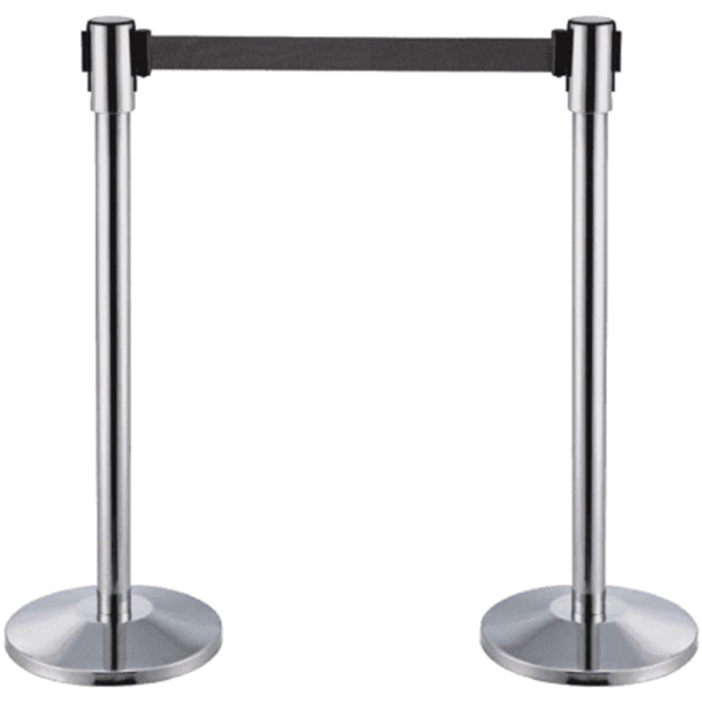 Twinco Barrier Post & Base, 2 Posts, 1.8m Black Belt per Post, Chrome