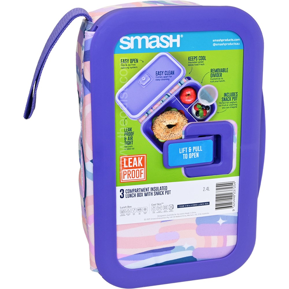 Introducing the Smash 31814 Hybrid Insulated Lunch Box, your perfect companion for school lunches in Papua New Guinea! With a spacious 2.4L capacity and three convenient compartments, this stylish purple lunch box is designed for girls who want to keep their meals organised and fresh. The included snack pot ensures easy access to treats, while the leak-proof and airtight features guarantee no spills in your bag. The cool skin design adds a trendy touch, making lunchtime fun and fashionable. Easy to clean and durable, this lunch box is ideal for students on the go. Elevate lunch hour with Smash!