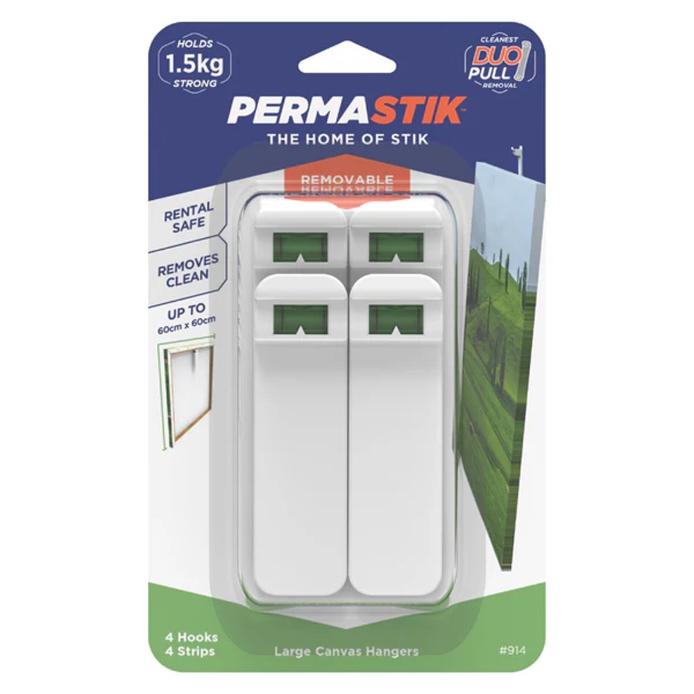 Elevate your space with Permastik #914 Large Canvas Hangers, expertly designed for effortless display. Each pack includes 4 sturdy hooks and 4 robust strips, supporting up to 1.5kg securely, making them perfect for showcasing canvas artwork sized up to 60cm x 60cm. Crafted from durable plastic, these hangers are rental-safe and remove cleanly without leaving sticky residues, ensuring your walls remain pristine. Ideal for both home and office settings in Papua New Guinea, Permastik hooks blend functionality with elegance, allowing you to easily change your decor without hassle. Transform your space today with Theodist canvas hangers!