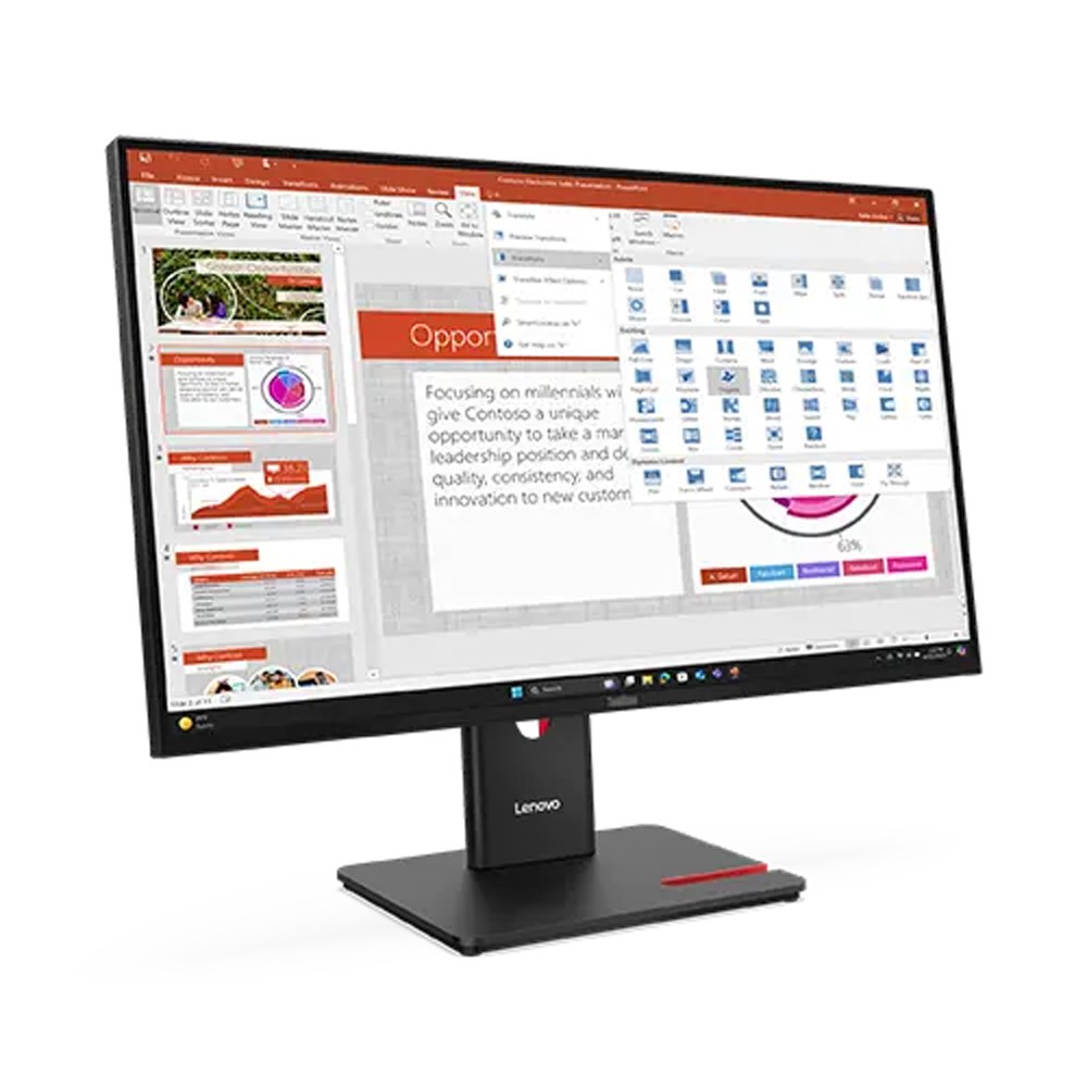 Elevate your viewing experience with the Lenovo T27-40 27" WLED IPS FHD Monitor. Designed for both home and office setups in Papua New Guinea, this monitor features a stunning Full HD (1920 x 1080) resolution with vibrant colours and wide viewing angles thanks to its IPS technology. Connectivity is seamless with HDMI, DisplayPort, and USB options. Its ergonomic pivot design allows you to customise your screen position, enhancing productivity during long work sessions. Whether you’re streaming, gaming, or multitasking, the Lenovo T27-40 is the perfect companion for clarity and comfort. Upgrade your workspace today at Theodist!