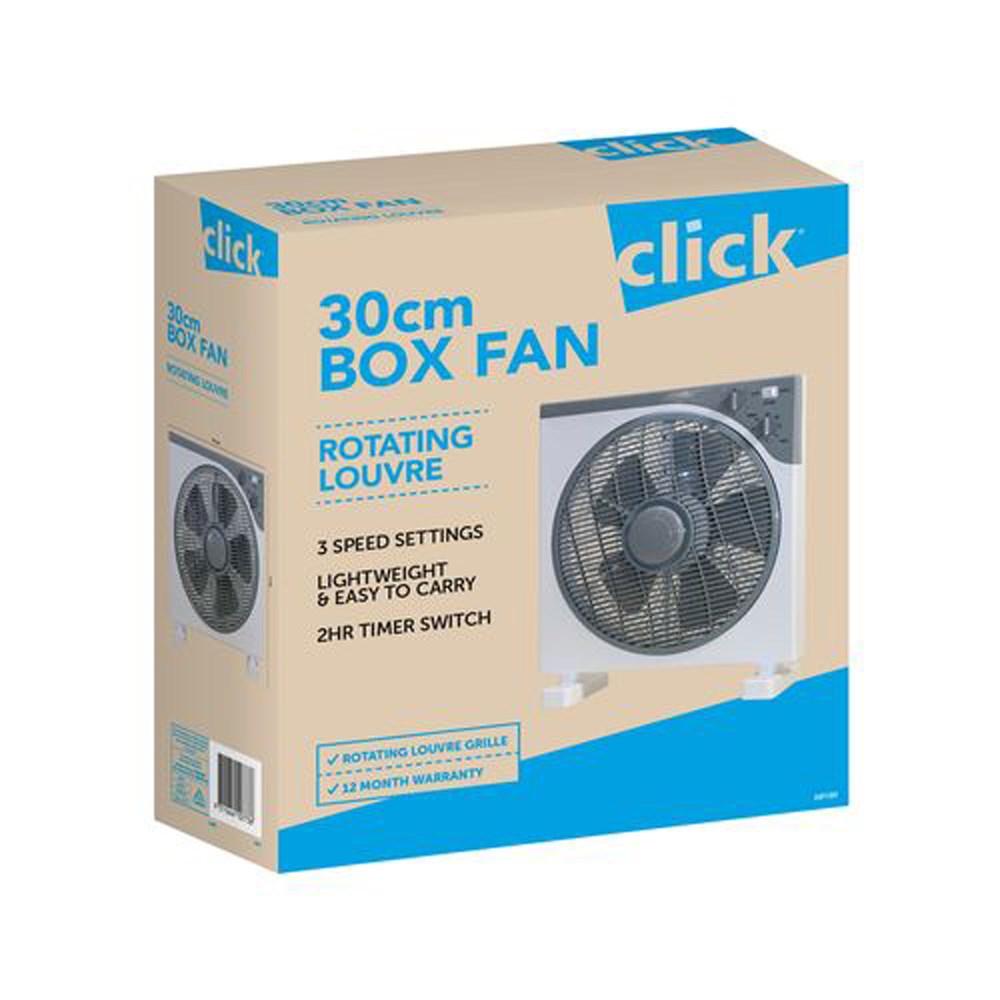 Stay cool and comfortable with the Click 30cm Box Fan, perfect for your home or office in Papua New Guinea. This versatile fan features 3 adjustable speed settings, allowing you to customise airflow to your preference. With a convenient 2-hour timer, you can easily set it and forget it, ensuring refreshing breezes when you need them most. The 360-degree rotating grill means optimal air circulation throughout your space. Lightweight and portable, the carry handle makes it easy to move from room to room. Measuring 37cm x 42cm, this stylish fan is ideal for any setting. Beat the heat with Click!