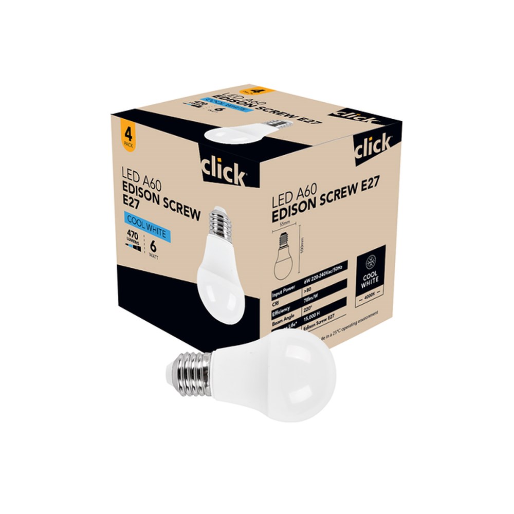 Illuminate your space with the Click LED A60 Edison Screw E27 bulbs, perfect for both home and office use in Papua New Guinea. These energy-efficient 6-watt bulbs emit a bright 470 lumens, offering options for a soothing cool white or warm white glow to match your ambience needs. Designed to last, these bulbs not only reduce energy consumption but also minimise replacement costs. Its classic Edison screw design makes installation effortless in standard fixtures. Upgrade your lighting today and experience the perfect blend of style and functionality with Click LED – a smart choice for a sustainable future!