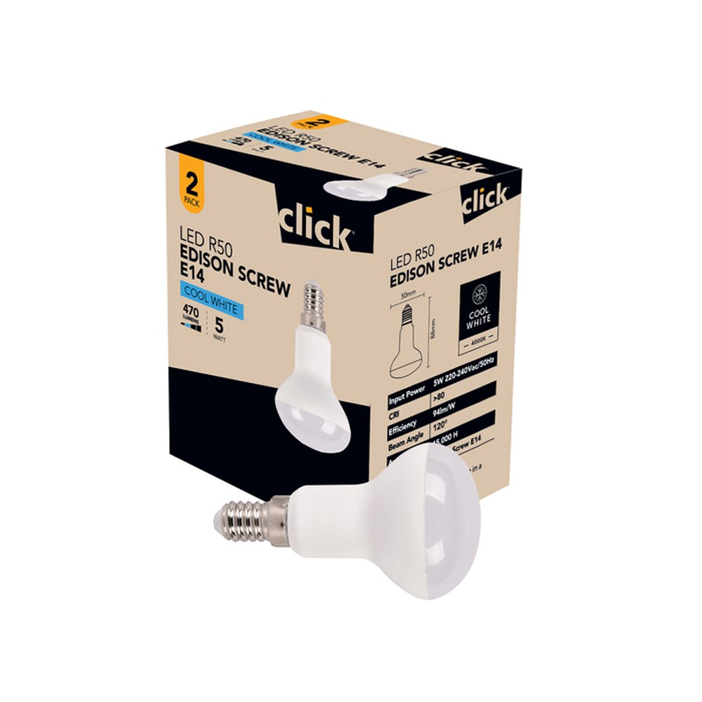 Illuminate your space with the Click LED R50 Edison Screw E14 Cool White bulbs, delivering an impressive 470 lumens while consuming just 5 watts of energy. Perfect for both home and office use in Papua New Guinea, these eco-friendly bulbs provide a bright, crisp light that enhances productivity and ambiance. The pack of two ensures you always have a reliable source of illumination. With a classic design, they fit seamlessly into existing fixtures, offering both style and functionality. Upgrade your lighting solution today and enjoy long-lasting performance with minimal energy cost from Theodist.