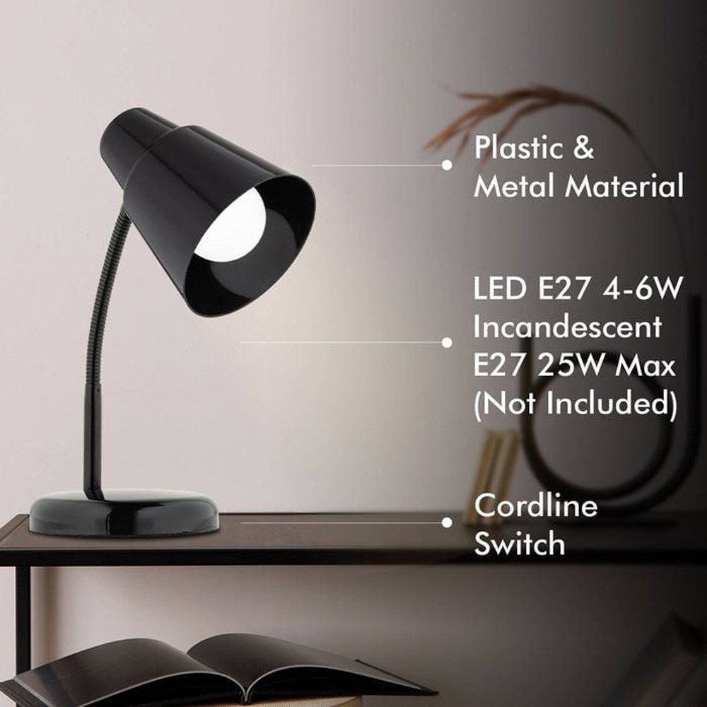 Illuminate your workspace with the Verve Design Brylee ATL153BK Task Lamp Desktop, a stunning blend of modern style and practicality. Crafted from durable plastic and metal, this sleek black lamp is designed for both home and office use in Papua New Guinea. The cordline switch ensures effortless control, while the LED E27 (4-6W) and incandescent E27 (25W max) compatibility allows for versatile lighting options. Enhance productivity and aesthetics with this eye-catching task lamp, perfect for any desk or study. Whether for reading, working, or studying, the Brylee Task Lamp is your ultimate lighting solution. Discover your perfect illumination today at Theodist!